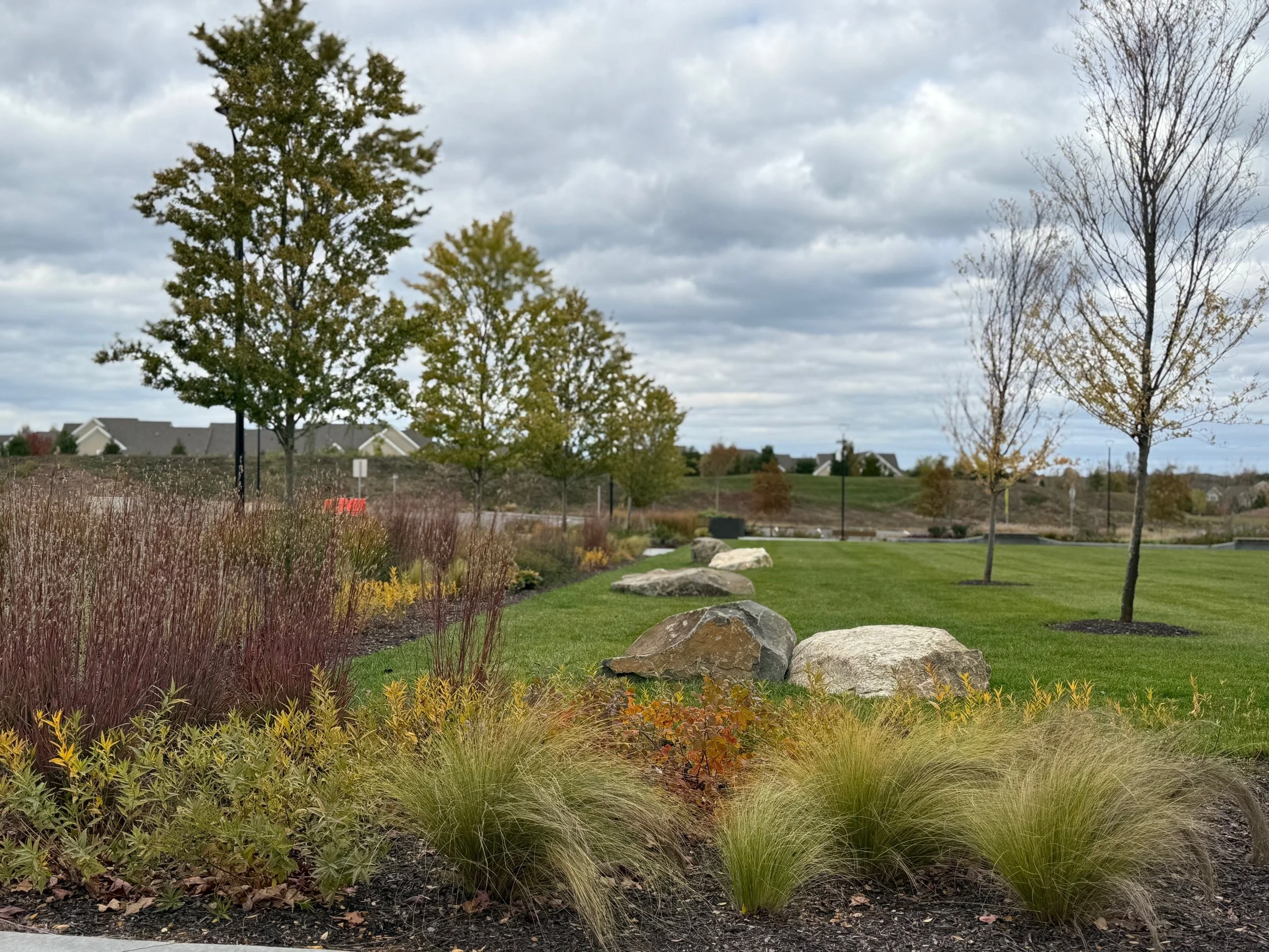 As part of the newly developed Providence Town Center offshoot, the public park encompasses an entire block. The landscape is home to large scale native trees, vast lawn areas that can host an array of outdoor activities and events, and the colored hardscape creates connectivity to the Town Center fabric. The design team incorporated both natural boulder seating and colorful furniture pieces that create opportunity for exciting play and socializing. One can find themselves resting in the shade under the tree grove, or throwing a frisbee on the great lawn